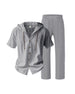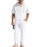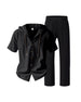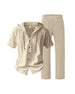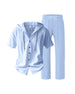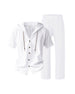 SPECIFICATIONS Style: Casual Category: Sets Material: 95% Linen, 5% Polyester Pattern Type: Solid Color Sleeve Type: Regular sleeve Sleeve Length: Short Sleeve Pants Type: Conventional Pants Length: Long Fit Type: Regular Season: Spring,Summer Details: Drawstring Package Includes: 1 x Top, 1 x Pants SIZE TABLE Size Top length Pants le...