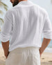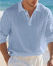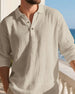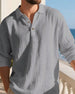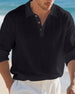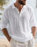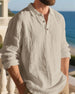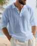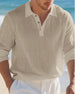 Men's Lightweight Loose Linen Long Sleeve Polo Shirt