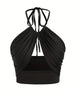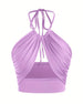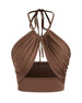 Women's Ruched Tie Back Halter Neck Crop Cami Top