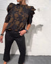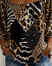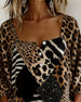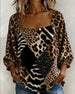 Square Neck Leopard Print Patchwork Sequin Blouse