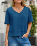 SPECIFICATIONS Top Type: Sweatshirts Style: Casual Material: 50% Cotton, 50% Polyester Occasion: Daily Neckline: V neck_V Pattern Type: Solid Color Sleeve Type: Raglan sleeve Sleeve Length: Long Sleeve Fit Type: Regular Season: Spring,Fall Package Includes: 1 x Sweatshirt SIZE TABLE Size Bust Length Sleeves CM INCH CM INCH CM I...