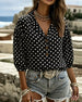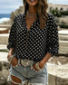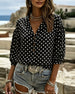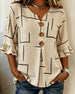 SPECIFICATIONS Top Type: Blouses Style: Casual Material: Cotton Blends Occasion: Daily Neckline: V neck_V Pattern Type: Print Sleeve Type: Ruffle Sleeve Sleeve Length: 3/4 Sleeve Fit Type: Regular Season: Spring,Summer Details: Buttons Package Includes: 1 x Blouse SIZE TABLE Size Bust Length CM INCH CM INCH S 92 36.22 68 26.77 M 96 37...