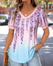 SPECIFICATIONS Top Type: Tops Style: Casual Material: Cotton Blends Occasion: Daily Neckline: V neck_V Pattern Type: Floral Sleeve Type: Lantern Sleeve Sleeve Length: Short Sleeve Fit Type: Regular Season: Spring,Summer Package Includes: 1 x Top SIZE TABLE Size Bust Length CM INCH CM INCH S 92 36.22 65 25.59 M 96 37.8 66.5 26.18 L...
