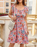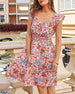 Colorful Floral Print Square-Neck with Ruffle Sleeves Dress