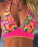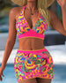 SPECIFICATIONS Style: Vacation Material: 15% Spandex,85% Polyester Occasion: Vacation Neckline: V neck_V Pattern Type: Color Block,Print Sleeve Length: Sleeveless Top Type: Bikini Bra Type: Wireless Bra Bottom Type: Shorts Fit Type: Skinny Season: Spring,Summer,Fall,Winter Package Includes: 1 x Bikini SIZE TABLE Size Bust Waist Hip Under bus...