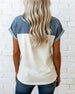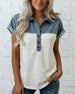 Denim Patchwork Turn-Down Collar T-Shirt