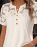 SPECIFICATIONS Top Type: Blouses Style: Casual Material: Cotton Blends Occasion: Daily Neckline: V neck_V Pattern Type: Floral Sleeve Type: Regular sleeve Sleeve Length: Short Sleeve Fit Type: Regular Season: Spring,Summer Details: Buttons,Lace Package Includes: 1 x Blouse SIZE TABLE Size Bust Length CM INCH CM INCH S 97 38.19 6...