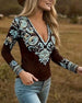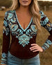 Deep V-Neck Ethnic Style Long-Sleeved Top