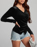 SPECIFICATIONS Top Type: Tops Style: Elegant Material: Velvet Occasion: Daily Neckline: V neck_V Pattern Type: Solid Color Sleeve Type: Regular sleeve Sleeve Length: Long Sleeve Fit Type: Regular Season: Fall,Winter Details: Shirred Package Includes: 1 x Top SIZE TABLE Size Bust Length CM INCH CM INCH S 97 38.19 65 25.59 M 101...