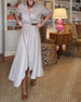 SPECIFICATIONS Style: Casual Material: Cotton Blends Dress Type: A-Line Dress Length: Maxi Neckline: V neck_V Pattern Type: Print Sleeve Type: Ruffle Sleeve Sleeve Length: Half Sleeve Fit Type: Regular Season: Spring,Summer Occasion: Daily Package Includes: 1 x Dress SIZE TABLE Size Bust Length CM INCH CM INCH S 97 38.19 132 51.97 ...