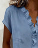 SPECIFICATIONS Top Type: Blouses Style: Casual Material: Cotton Occasion: Daily Neckline: V neck_V Pattern Type: Solid Color Sleeve Type: Regular sleeve Sleeve Length: Short Sleeve Fit Type: Regular Season: Spring,Summer Details: Ruffle Package Includes: 1 x Blouse SIZE TABLE Size Bust Length CM INCH CM INCH S 97 38.19 65 25.59 ...