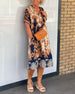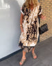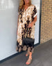 Elegant Three-Quarter Sleeve Printed Waist Dress