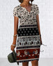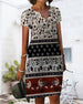 V-Neck Short-Sleeved Printed Shift Dress