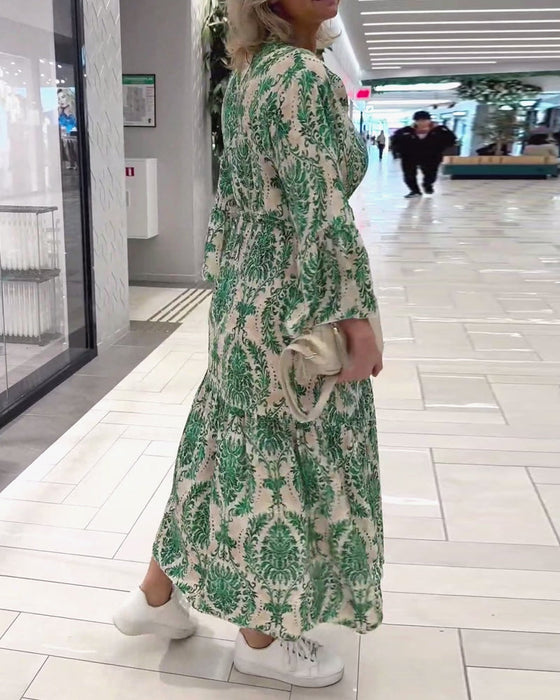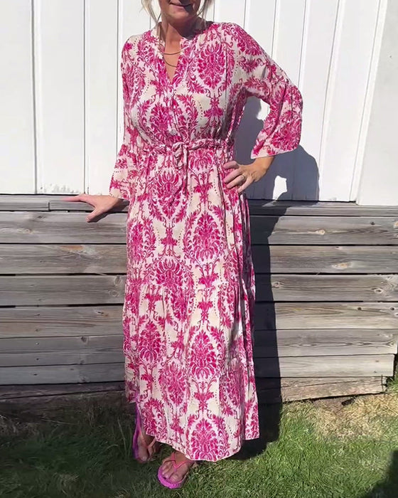 Elegant Three-Quarter Sleeve Printed Waist Dress