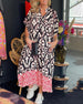 Elegant Three-Quarter Sleeve Printed Waist Dress
