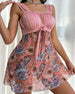 V-Neck Lotus Sleeve Floral Dress
