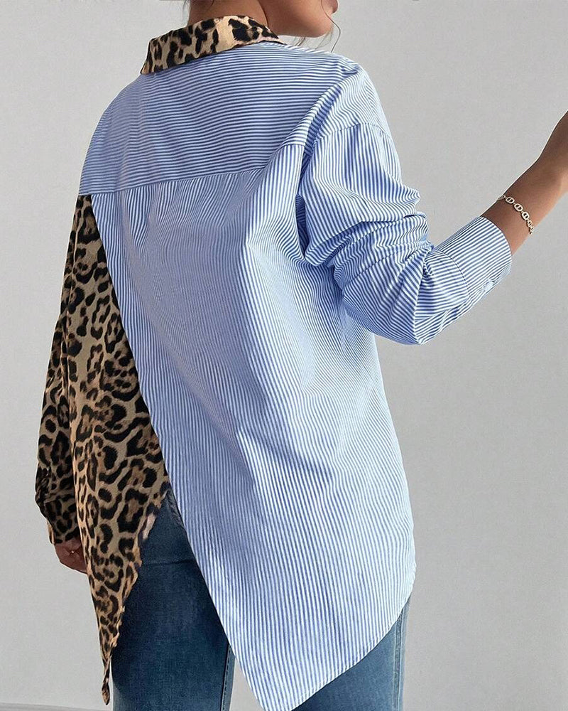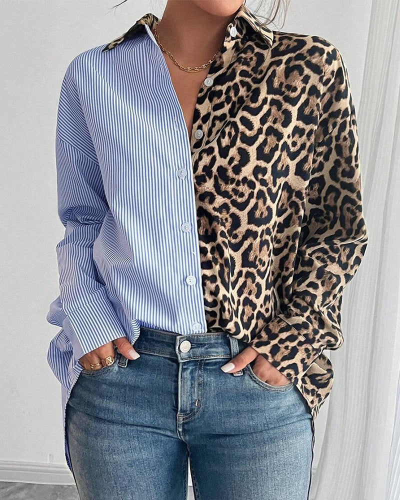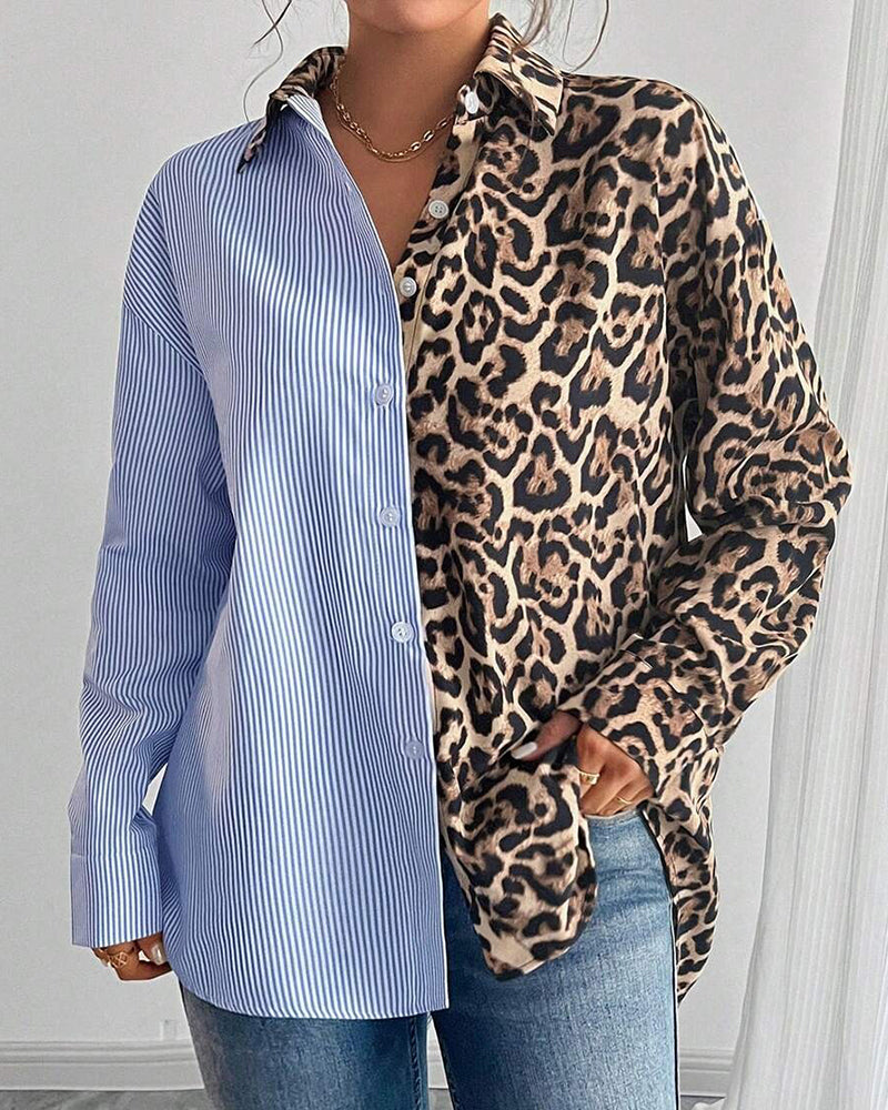 NEW Icon1 Striped Patchwork Leopard Print Shirt