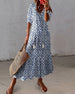 Elegant Three-Quarter Sleeve Printed Waist Dress
