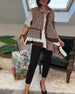 SPECIFICATIONS Style: Casual Top Type: Blouses Category: Sets Material: Cotton Blends Pattern Type: Color Block,Print,Leopard Neckline: Stand Collar Sleeve Type: Regular sleeve Sleeve Length: Half Sleeve Pants Type: Conventional Pants Length: Long Fit Type: Regular Season: Spring,Fall Details: Pocket,Buttons Occasion: Daily Package Includes: ...