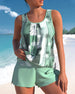 SPECIFICATIONS Style: Vacation Material: 85% polyester, 15% spandex Occasion: Vacation Neckline: U Neck_U Pattern Type: Print Sleeve Length: Sleeveless Top Type: Tankini Bra Type: Wireless Bra Bottom Type: Shorts Fit Type: Skinny Season: Summer Details: Bowknot Package Includes: 1 x Tankini SIZE TABLE Size Bust Waist Hip Un...