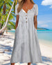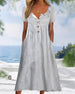 SPECIFICATIONS Style: Casual Material: 5% Spandex, 95% Polyester Dress Type: A-Line Dress Length: Midi Neckline: V neck_V Pattern Type: Striped, Print Sleeve Type: Regular sleeve Sleeve Length: Short Sleeve Details: Pocket, Buttons Fit Type: Regular Season: Spring, Summer, Fall Occasion: Daily Package Includes: 1 x Dress SIZE TABLE ...