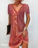 SPECIFICATIONS Style: Casual, Elegant Material: Spandex, Polyester Dress Type: Shift dress Dress Length: Above-knee Neckline: V neck_V Pattern Type: Floral, Leaves, Print Sleeve Type: Regular sleeve Sleeve Length: Short Sleeve Fit Type: Regular Season: Spring, Summer, Fall Occasion: Daily Package Includes: 1 x Dress SIZE TABLE (cm) ...
