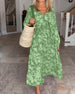 SPECIFICATIONS Style: Casual, Vacation Material: Cotton Blends Dress Type: A-Line Dress Length: Maxi Neckline: V neck_V Pattern Type: Floral Sleeve Type: Lantern Sleeve Sleeve Length: Long Sleeve Details: Shirred, Drawstring Fit Type: Regular Season: Spring, Summer Occasion: Daily, Vacation Package Includes: 1 x Dress SIZE TABLE ...