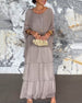 SPECIFICATIONS Style: Casual Material: 100% Polyester Dress Type: A-Line Dress Length: Maxi Neckline: Round Neck Pattern Type: Solid Color Sleeve Type: Regular sleeve Sleeve Length: 3/4 Sleeve Details: Shirred Fit Type: Loose Season: Spring, Fall, Winter Occasion: Daily, Vacation Package Includes: 1 x Dress SIZE TABLE Size Bust Length ...