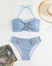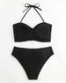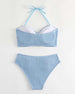 Halter Solid Color Striped Swimsuit