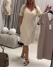 olid color dress with V-neck and A-line