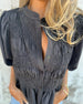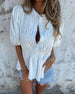 SPECIFICATIONS Style: Casual Material: Cotton Blends Dress Type: Tunic Dress Length: Knee Length Neckline: V neck_V,Lapel Pattern Type: Solid Color Sleeve Length: Short Sleeve Details: Shirred Fit Type: Regular Season: Spring,Summer Occasion: Daily Package Includes: 1 x Dress SIZE TABLE Size Bust Length CM INCH CM INCH S 97 38.19...