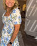V-Neck Floral Print Waisted Short-Sleeved Dress