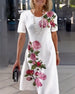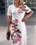 Short Sleeve Rose Print Shift Dress