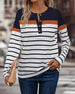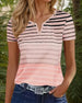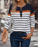 Casual Striped Print Contrast Color Half-Button Top