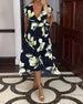 SPECIFICATIONS Style: Casual Material: Cotton Blends Dress Type: Shift dress Dress Length: Midi Neckline: V neck_V Pattern Type: Print Sleeve Type: Regular sleeve Sleeve Length: 3/4 Sleeve Details: Lace Up Fit Type: Regular Season: Spring,Summer Occasion: Daily Package Includes: 1 x Dress SIZE TABLE Size Bust Length CM INCH CM INCH...