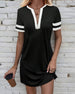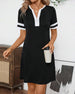 Half-Zip Colorblock Slim-Fit Short-Sleeved Dress