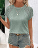 SPECIFICATIONS Top Type: Blouses Style: Casual Material: Cotton Blends Occasion: Daily Neckline: Round Neck Pattern Type: Solid Color Sleeve Type: Raglan sleeve Sleeve Length: Short Sleeve Fit Type: Regular Season: Spring,Summer Details: Hollow Out,Lace Package Includes: 1 x Blouse SIZE TABLE Size Bust Length CM INCH CM INCH S 9...