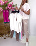 SPECIFICATIONS Style: Elegant Material: Cotton Blends Dress Type: Shift dress Dress Length: Knee Length Neckline: V neck_V Pattern Type: Solid Color Sleeve Type: Regular sleeve Sleeve Length: Short Sleeve Details: Shirred Fit Type: Regular Season: Spring, Summer, Fall Occasion: Daily Package Includes: 1 x Dress SIZE TABLE Size ...