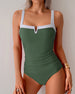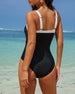 SPECIFICATIONS Style: Sexy Material: 82% Chinlon,18% Spandex Occasion: Vacation Neckline: Square Neck Pattern Type: Color Block Sleeve Type: Regular sleeve Sleeve Length: Sleeveless Top Type: One Piece Bra Type: Wireless Bra Fit Type: Skinny Package Includes: 1 x One Piece SIZE TABLE Size Bust Waist Hip CM INCH CM INCH CM INCH S 89...