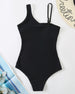 SPECIFICATIONS Style: Sexy Material: 82% Chinlon,18% Spandex Occasion: Vacation Neckline: One Shoulder Pattern Type: Solid Color Sleeve Length: Sleeveless Top Type: One Piece Bra Type: Wireless Bra Fit Type: Skinny Details: Ripped,Patchwork Package Includes: 1 x One Piece SIZE TABLE Size Bust Waist Hip CM INCH CM INCH CM INCH S 82 ...