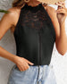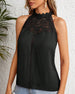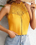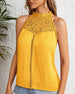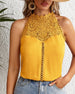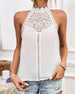 SPECIFICATIONS Top Type: Tank Top Style: Casual Material: Polyester Occasion: Daily Neckline: Halter Pattern Type: Solid Color Sleeve Length: Sleeveless Fit Type: Regular Season: Spring,Summer Details: Hollow Out,Lace Package Includes: 1 x Tank Top SIZE TABLE Size Bust Length CM INCH CM INCH S 94 37.01 58 22.83 M 99 38.98 59 23.23...