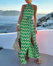SPECIFICATIONS Style: Vacation Material: Cotton Blends Dress Type: A-Line Dress Length: Maxi Neckline: Halter Pattern Type: Print Sleeve Length: Sleeveless Details: Lace Up Fit Type: Regular Season: Summer Occasion: Daily Package Includes: 1 x Dress SIZE TABLE Size Bust Length CM INCH CM INCH S 95 37.4 130 51.18 M 100 39.37...