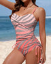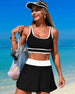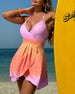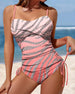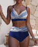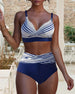 Two-Piece Striped Color-Block Bikini Swimsuit