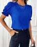 SPECIFICATIONS Top Type: Blouses Style: Casual Material: Cotton Blends Occasion: Daily Neckline: Round Neck Pattern Type: Solid Color Sleeve Type: Lantern Sleeve Sleeve Length: Short Sleeve Fit Type: Regular Season: Spring,Summer Package Includes: 1 x Blouse SIZE TABLE Size Bust Length Sleeves Shoulder CM INCH CM INCH CM INCH CM INCH ...