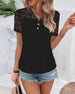 SPECIFICATIONS Top Type: Blouses Style: Casual Material: Spandex,Polyester Occasion: Daily Neckline: V neck_V Pattern Type: Solid Color Sleeve Type: Regular sleeve Sleeve Length: Short Sleeve Fit Type: Regular Season: Spring,Summer Details: Patchwork,Buttons,Lace Package Includes: 1 x Blouse SIZE TABLE Size Bust Length CM INCH CM INCH...