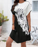 Casual Short-Sleeved Slit Round Neck Printed Dress