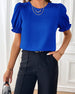 Round Neck Chiffon Jacquard Solid Color Blouse