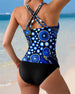 SPECIFICATIONS Style: Vacation Material: A: 85% Polyester, 15% Spandex; B: 82% Nylon, 18% Spandex Occasion: Vacation Pattern Type: Print Top Type: Tankini Bra Type: Triangle Bottom Type: Natural Fit Type: Regular Details: Cross Straps Package Includes: 1 x Tankini SIZE TABLE Size Bust Waist Hip Under bust CM INCH CM INCH CM INCH CM IN...