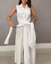SPECIFICATIONS Style: Casual Material: Cotton Blends Dress Type: Shirt Dress Length: Maxi Neckline: Lapel Pattern Type: Solid Color Sleeve Length: Sleeveless Details: Buckle,Cross Straps Fit Type: Regular Season: Spring,Summer Occasion: Daily Package Includes: 1 x Dress SIZE TABLE Size Bust Length CM INCH CM INCH S 95 37.4 13...