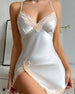 SPECIFICATIONS Style: Sexy Material: Cotton Blends Dress Type: Cami Dress Length: Above-knee Neckline: Spaghetti Straps Pattern Type: Solid Color Sleeve Length: Sleeveless Details: Backless,Cross Straps,Lace Fit Type: Regular Occasion: Daily Package Includes: 1 x Sleep Dress SIZE TABLE Size Bust Length CM INCH CM INCH S 76 29.92 64 ...